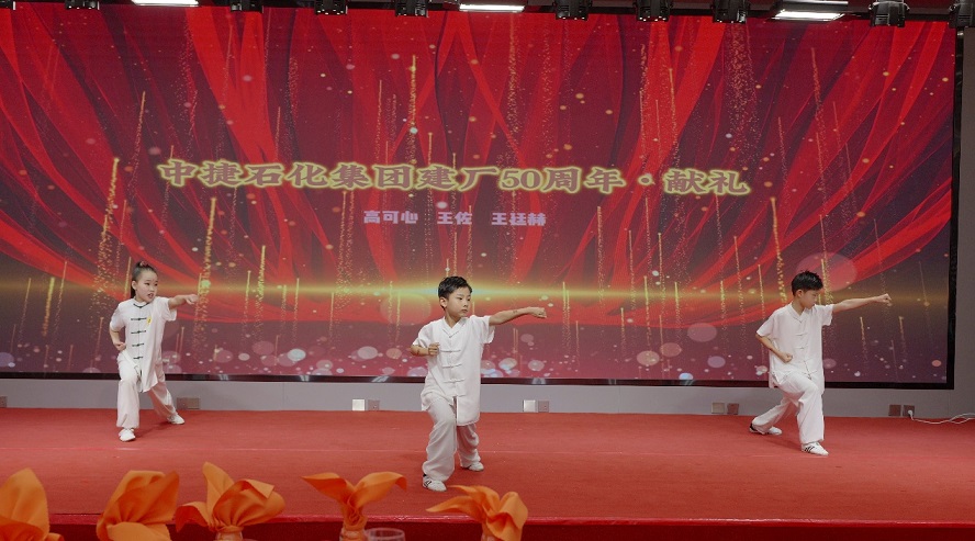 演出在四位小主持人昂扬的述说中徐徐展开,从斗志昂扬的架子鼓到刚柔并济的武术,从青春洋溢的舞蹈到深情款款的歌曲,从致敬奋斗的吉他弹唱到铿锵有力的诗朗诵,丰富多彩的节目不仅展现了新一代石化子弟的才华与朝气,更以童心的视角诠释了对奋斗精神的传承与对美好明天的向往。