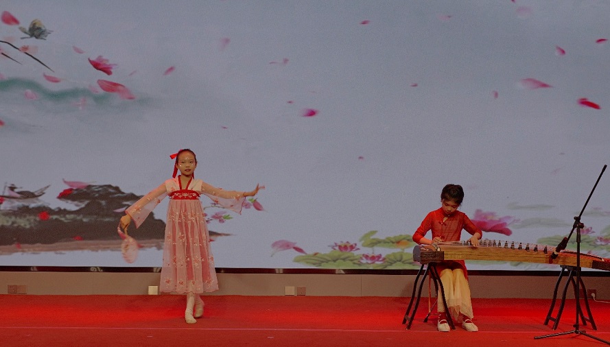古筝舞蹈《桃花妆》:朱梓瑜(集团公司朱鑫林之女)、张芷畅(新启元公司张悦之女)